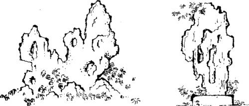 第三,讲究园林的细部处理。要做到小中见大,除要在布局、在模仿自然山水上下功夫外,很重要的是十分讲究细部的处理,这里包括建筑、山水、植物各方面的细部处理。私家园林建筑类型并不少,有待客的厅、堂,有读书作画的楼轩,有临水的船榭,还有大量的亭、廊,亭子和廊又有不同的形式。建筑上的门窗更是多样。门有长方门、圆洞门、八角门,还有梅花形、如意形和各种瓶形的门;墙上除普通的窗外,还有花窗、空窗、漏窗,窗上的花纹,仅在苏州园林里就可以找出一二百种式样(图20)。连园林的地面都是用砖、瓦、卵石拼砌出各种不同的花纹图案。石头除用作堆山外,还喜欢以独立或组合的形式供观赏。造园者选用颜色深浅有变化,形象玲珑透剔的石块,配以少许植物花草,放置在厅前、墙下,犹如一件大型盆景任人欣赏,在这里,块石已成为独立的雕刻艺术品了(图21)。